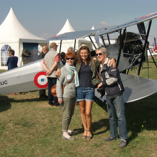 Bien entourée entre Jack Krine et Laurent Thomeret, deux anciens pilotes de chasse!